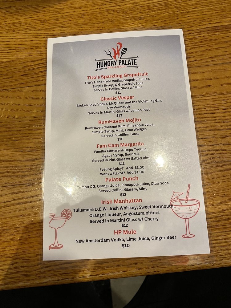 Don’t forget to save room for dessert! The brownie sundae is a sweet finale to your meal. Whether it's a casual outing or a night out with friends, Hungry Palate promises exceptional food, friendly service, and an atmosphere that keeps you coming back for more.